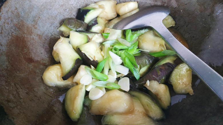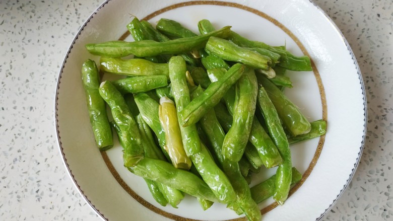 7. 锅中放入适量植物油,放入四季豆翻炒至出现虎皮