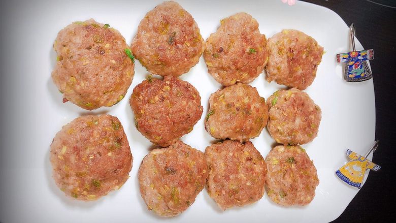 8. 锅中热油,做成一个个小肉饼,小火儿煎熟。