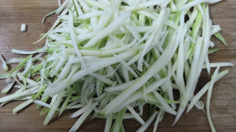 5. 捞出的生瓜丝,放凉白开中,过凉,备用