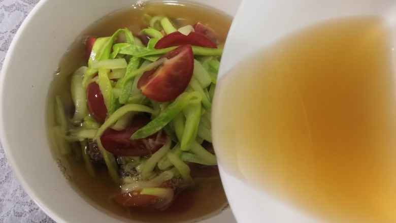 15. 番茄生瓜丝,在料汁中浸泡30分钟,即可上桌