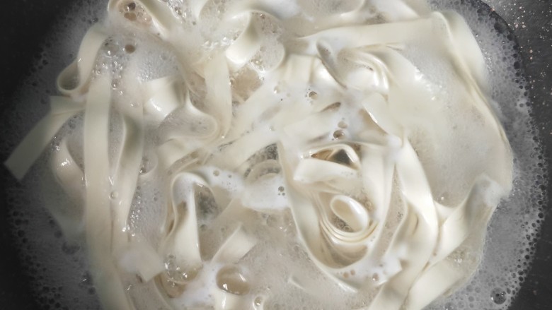 21. 面条捞出,豆米肉酱浇在煮好的面条上。