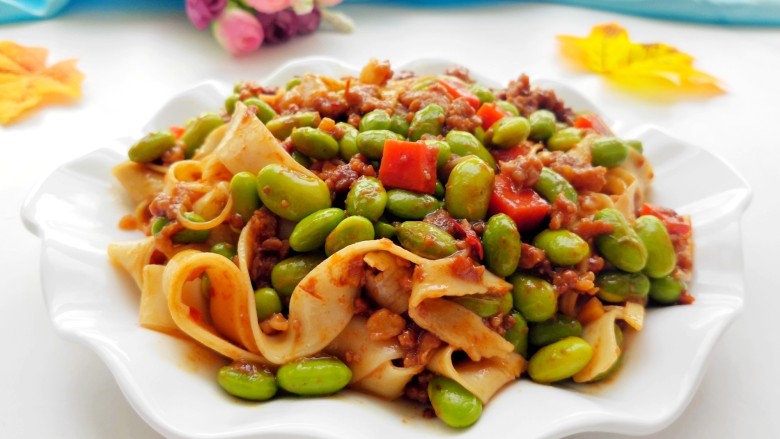 毛豆米鲜嫩清甜,它高钙低脂高蛋白,经常食用有降低胆固醇,降脂降糖,预防骨质疏松,美容养颜,预防心血管疾病的功效。用毛豆米肉酱拌面,非常香,天天吃它都不会腻!
