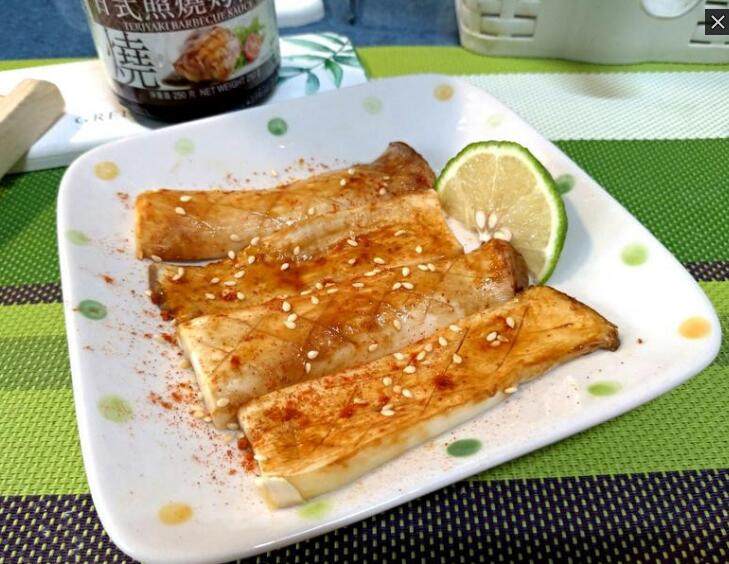- 2. 杏鲍菇要买大朵的烤起来口感才会好吃, 现买现烤,冰箱久放就乾掉没水份了。