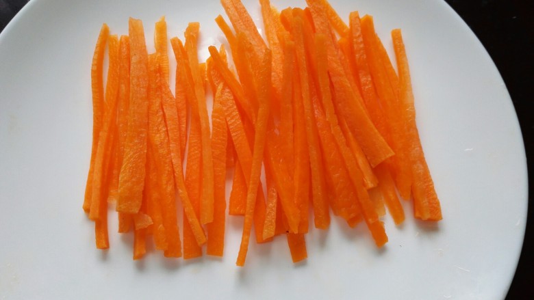 12. 炒一会之后放入胡萝卜丝一同翻炒