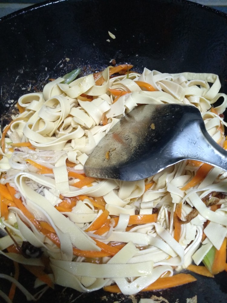 5. 葱姜蒜爆锅,下金针菇,胡萝卜丝翻炒