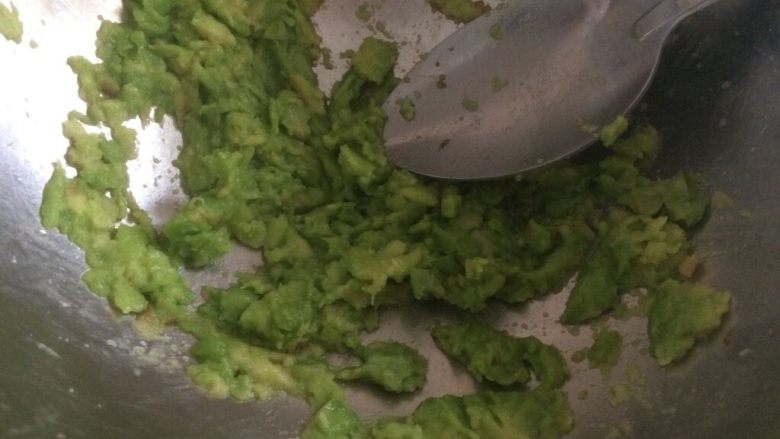 2. 牛油果去核挖出果肉,用勺子压成泥状;