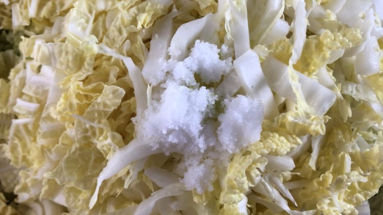 5. 白菜洗净切碎,加适量盐,用手抓匀去掉水分