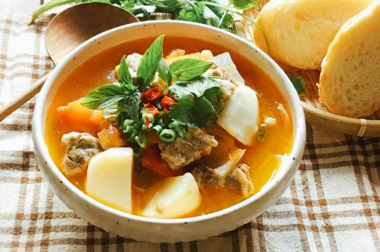 曾為法国殖民地的越南,饮食文化充满浓浓异国情调,加入鱼露和大量番茄燉煮的红烧牛腩,用香菜、九层塔提挈味觉层次,搭配法国麵包蘸著汤汁享用,那是东西文化的交界,也是传统与现代的错身,跨越时空融合了殖民歷史与在地文化的越南美食文化