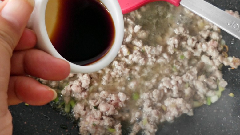 16. 放香葱,翻炒均匀,香菇烧麦馅做好,这个馅可以直接吃的,香喷喷的。