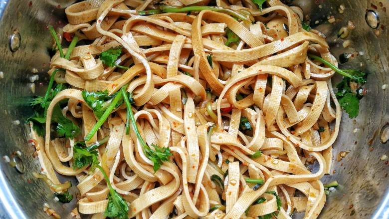 14. 锅中烧开水,加豆皮焯一分钟捞出过凉。