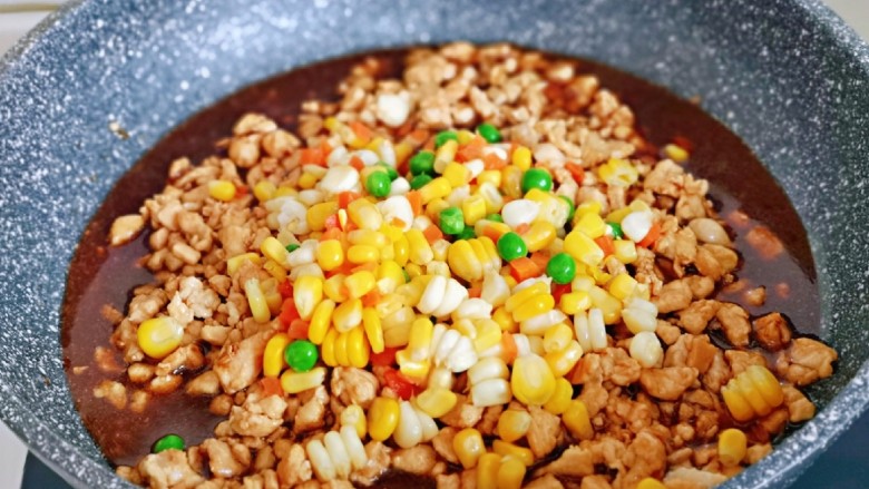15. 再盛一勺烧麦馅,馅料多少可以根据个人喜欢来,但是不建议放太少,那样不好看。