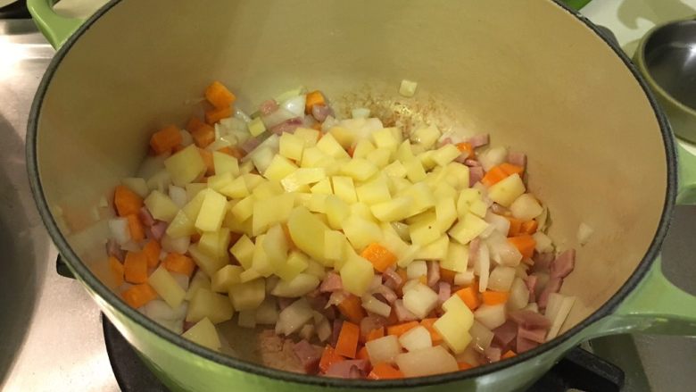 24. 这时候把卷心菜丁、芹菜丁放进去