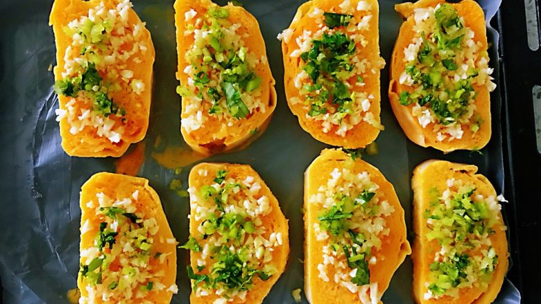 7. 把烤盘放入预热好的烤箱当中,上下火,180度烤30分钟。考的时间可以按照自家的烤箱来调节温度以及长短。