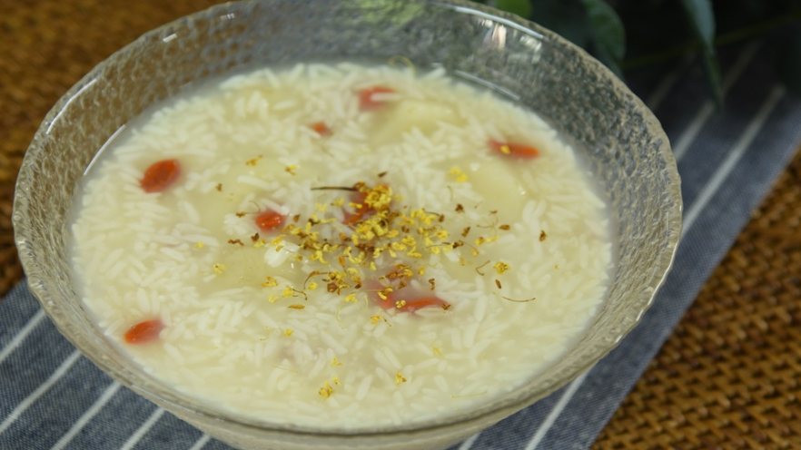 3. 撒上干桂花即可(冷藏后更好吃)。