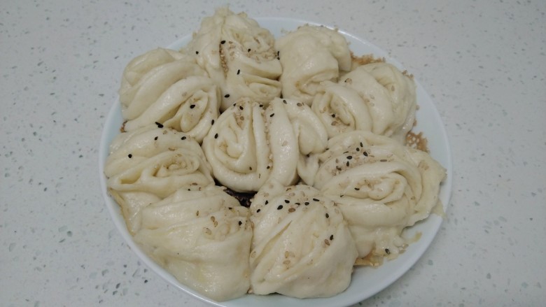 9. 不粘锅均匀抹油,放上花卷盖盖醒发。