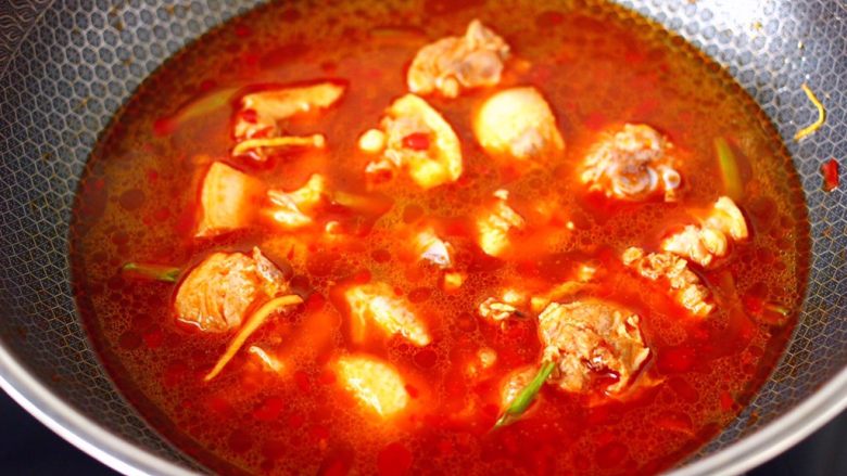 7. 放入焯过水的鸭肉,大火继续翻炒片刻。