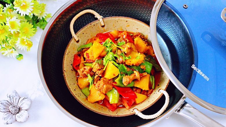 15. 好吃又营养的鸭腿烧双椒土豆就出锅咯,下饭又下酒哟。