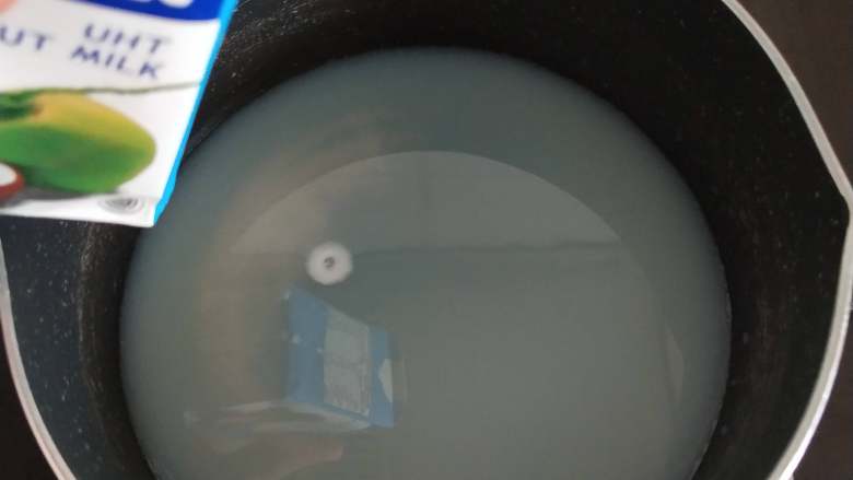 3. 3、加热到细砂糖融化即可离火加入椰浆拌匀。
