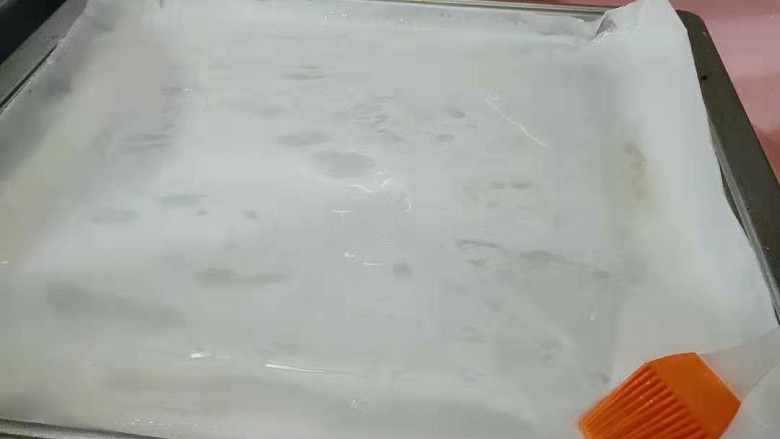 3. 烤盘垫油纸,倒油