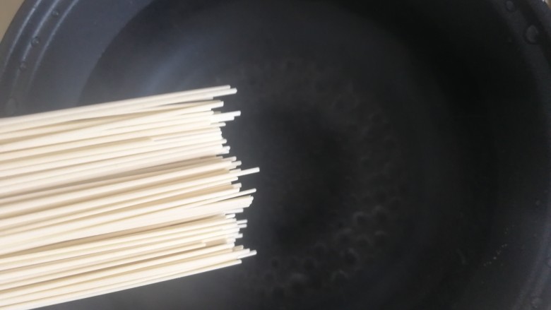 12. 另起一锅加一点盐煮开水,水开后下意面(我用假意面——用家里寻常面代替了)