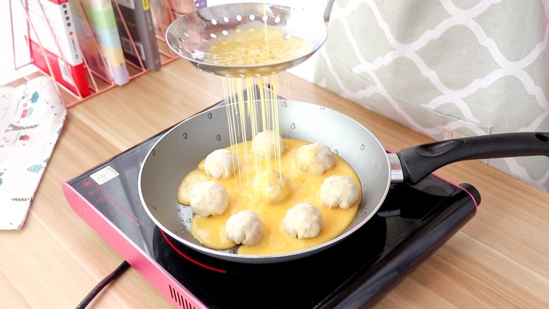 14. 盖锅盖,继续小火焖煎至蛋液熟透