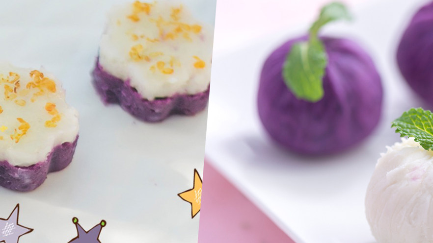 嗨,我是小鹿~ 最近天气实在是太热了,没什么胃口,我就想着刚好来减肥啦,那减肥怎么吃热量才比较低呢?就发现了紫薯和山药,紫薯能促进肠胃蠕动,山药可以生津养胃,降低血糖, 饱腹感强,热量低又高营养,还能换着花样做,老人小孩都适合吃~ 那今天的图文菜谱就是山药紫薯糕&紫薯豆沙茶巾饺 清甜可口,好吃不腻,颜值也高,作为主食或下午茶点心都超棒哒~ 做法真的再简单不过啦,把紫薯隔水蒸熟加牛奶压成泥,加入豆沙,用保鲜膜包起来拧一下就做好啦,减肥的童鞋要是觉得豆沙容易发胖可以少加点或不加哒,做好之后不仅颜色可爱,卖相也是小巧精致,咬一口就犹如棉花糖一样松软,不仅有外皮的香甜,还有豆沙糯糯的口感呢,想要减肥的童鞋不要错过啦~