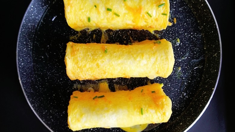 8. 不粘锅刷一层玉米油,放入吐司卷,小火慢煎