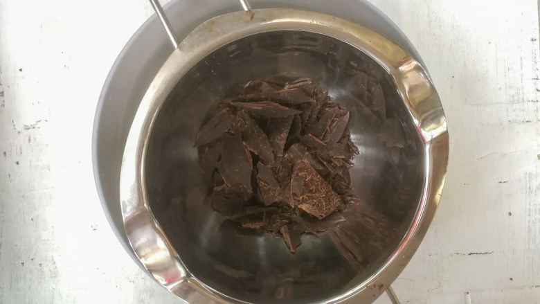 4. 黑巧克力放入巧克力融化碗中,隔65度左右温水化开