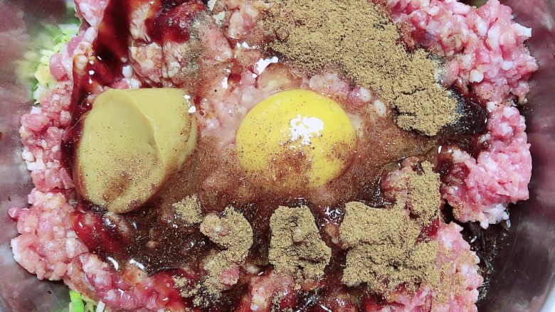 8. 拌好的饺子馅儿不干,黏稠状即可。