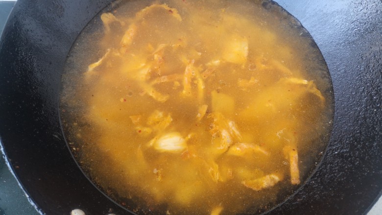 5. 油锅烧热,放入泡菜,翻炒一两分钟