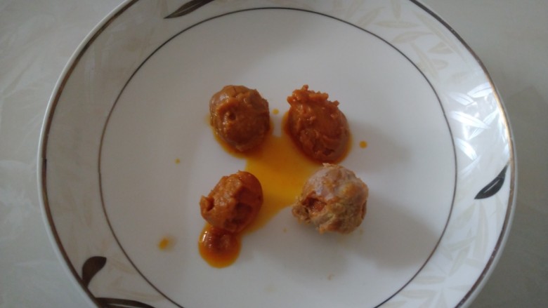 16. 用手将两头向中间收起,再用手压扁,再用擀面杖擀成薄片,放入包好咸蛋黄的豆沙团。