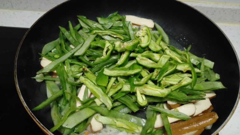 老娘说地里长了一颗扁豆,接的特别好,就摘了一些,再加上昨天晚上在超市买的特价豆干,就做了这盘颜值高而且营养高的豆干炒扁豆丝。