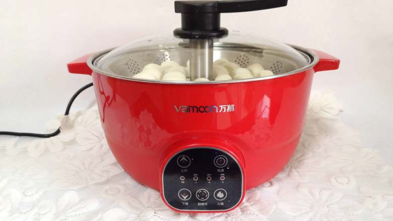 9. 把馒头放在铺有馒头纸的笼屉上,我用的万慕升降电火锅,除了吃火锅外,蒸东西也很好用。