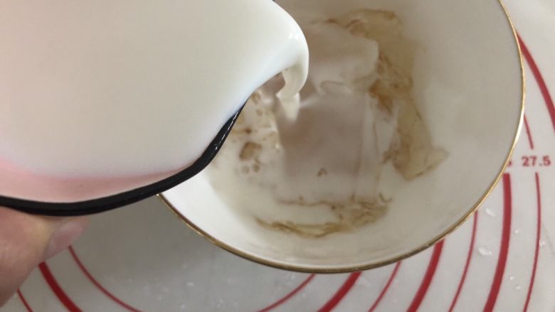 20. 再倒入融化了的明胶片牛奶,搅拌均匀。