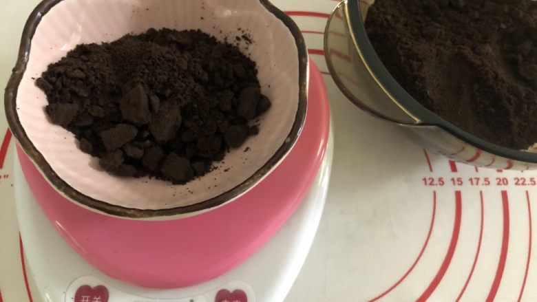 14. 这个时候黄油差不多已经融化好了,将融化的黄油倒入180g饼干碎里,搅拌均匀。