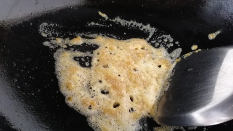 14. 锅中留一点底油,小火把咸蛋黄炒开。