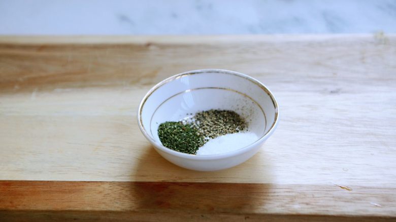 5. 准备调味料盐、黑胡椒碎、罗勒碎。