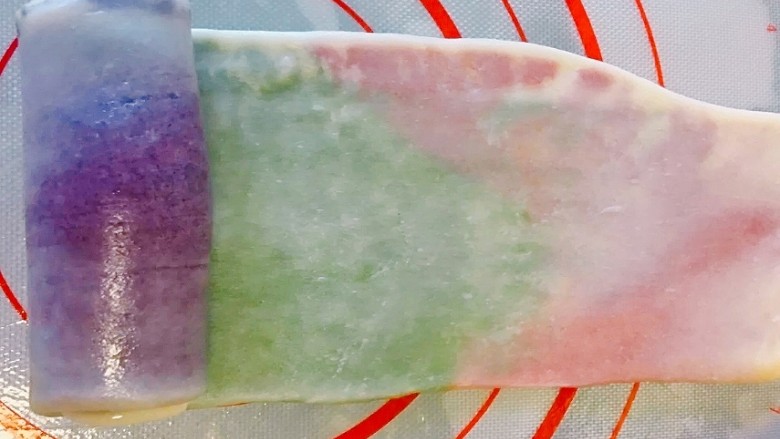 8. 任意搭配油酥的颜色,三色一组,摆放好后盖上保鲜袋或保鲜膜