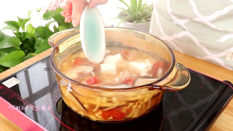 10. 再放入内酯豆腐,继续煮2分钟 tips:内酯豆腐是最易消化的植物蛋白,滑嫩的口感,非常适合给宝宝做辅食