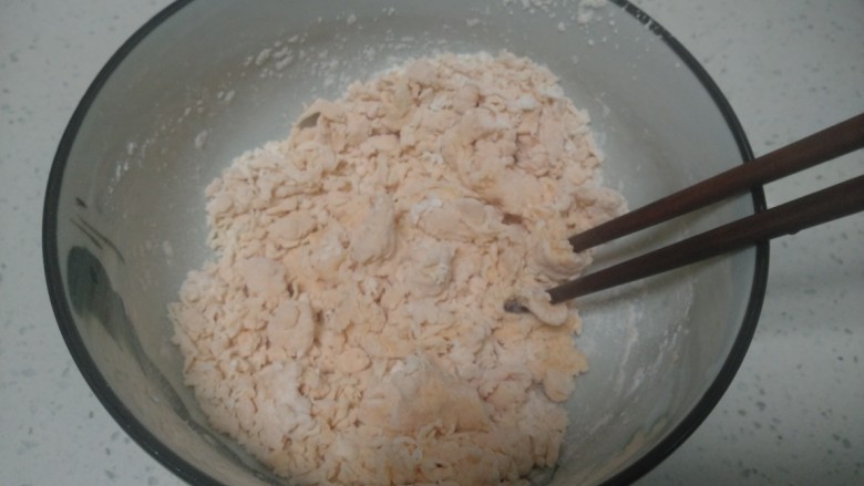 5. 面粉中加入适量胡萝卜汁,搅拌均匀