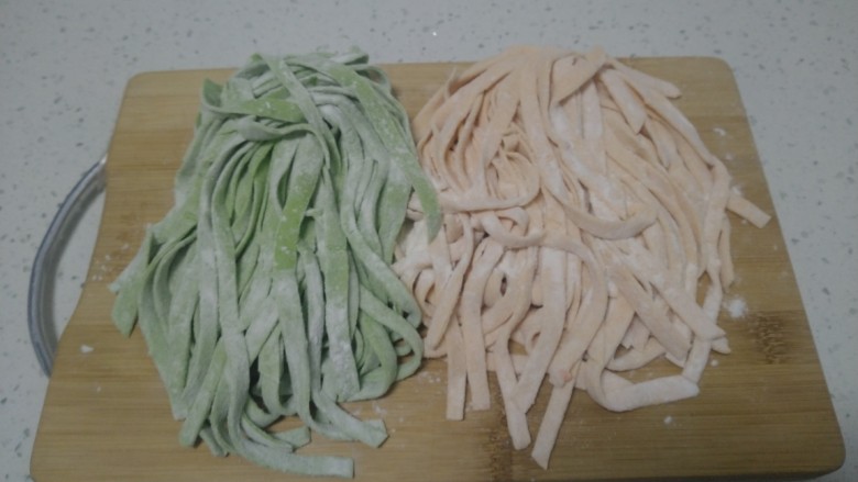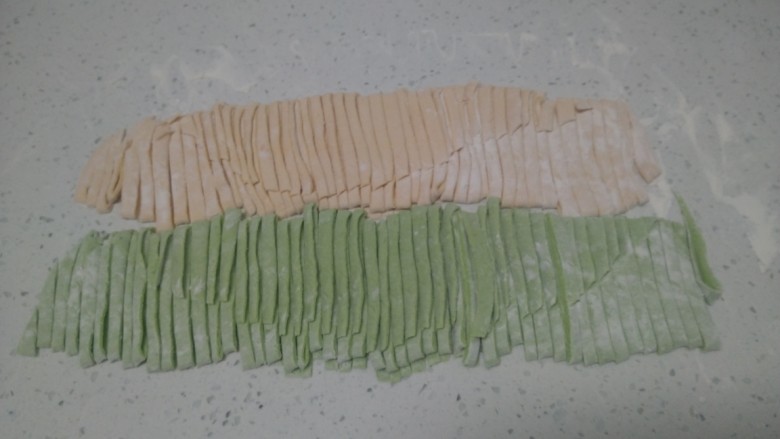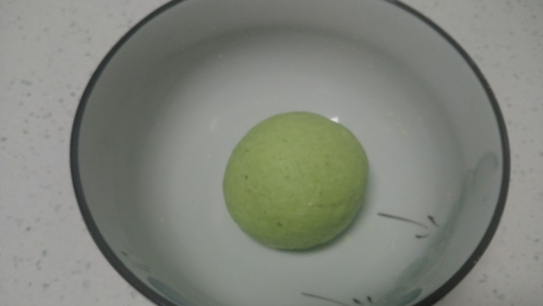 7. 面粉中放入适量皮菜汁,搅拌均匀