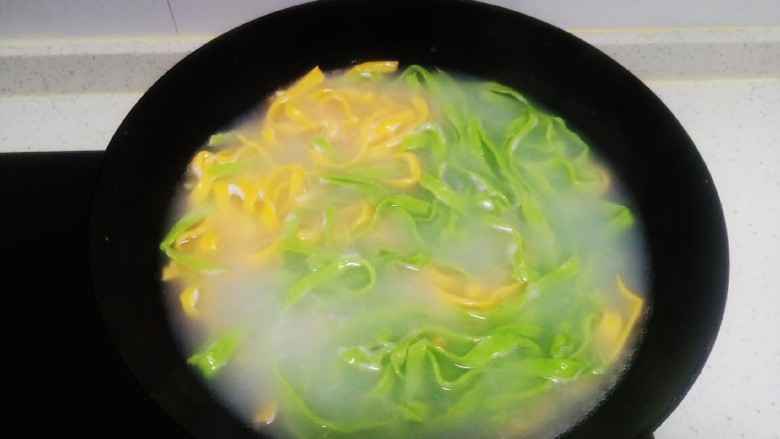 2. 水开后放入适量盐,几滴油,放入皮菜,焯水1分钟