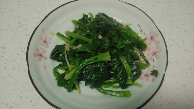 莎昨天送来点菠菜,再加上买了3毛钱的绿豆芽,做了一盘好吃的素菜。