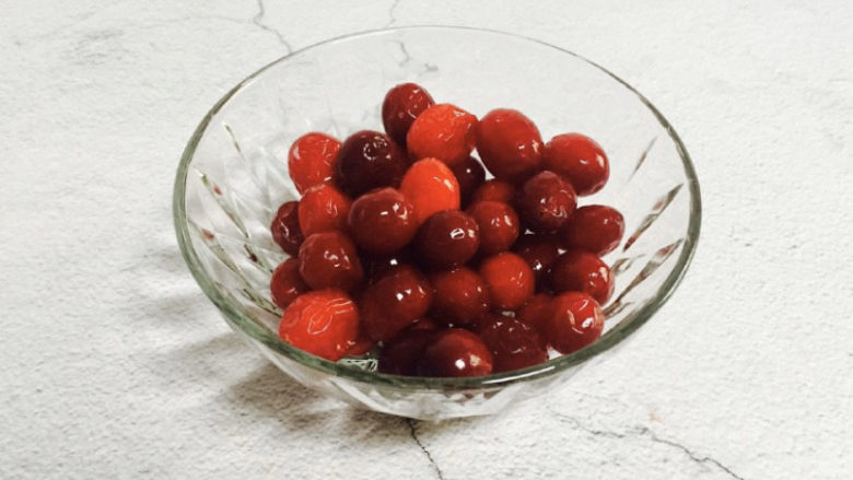 2. 鲜冻美国蔓越莓自然解冻后用盐水浸泡五分钟清洗干净