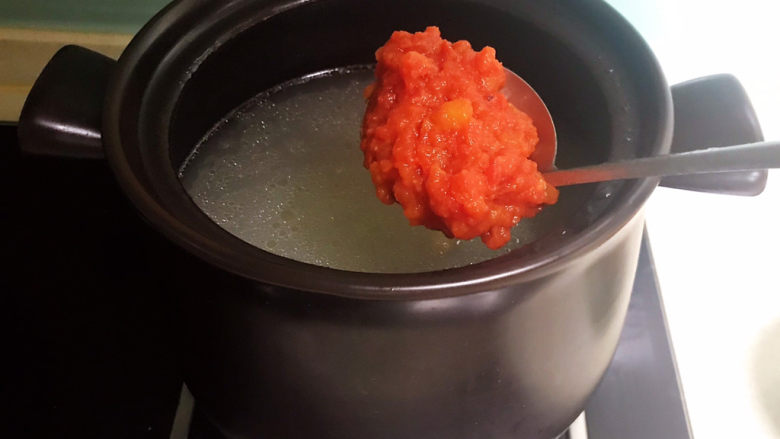8. 水烧开后把番茄放入锅中,煮2分钟