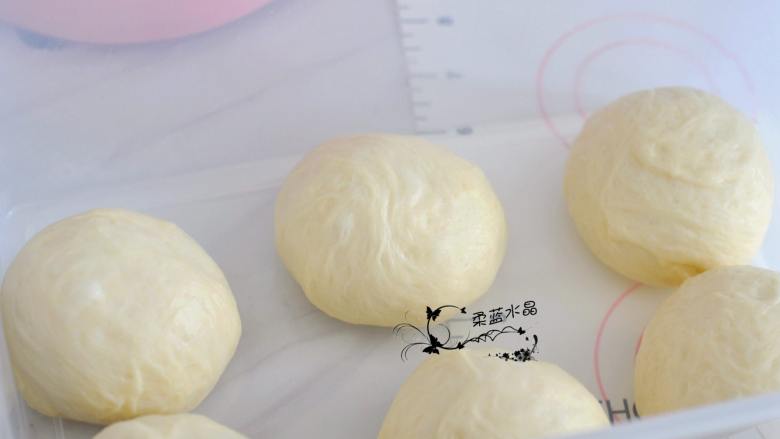 7. 将面团分割成六份,排气后滚圆,静置10分钟。