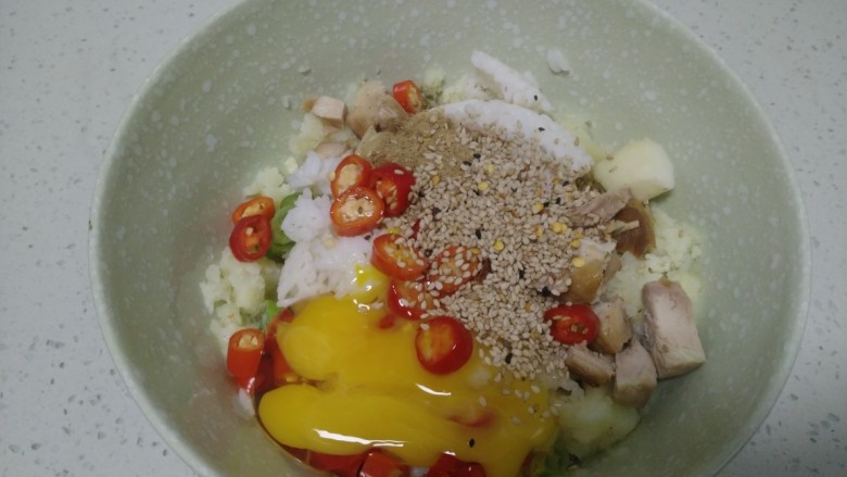 13. 电饼铛预热,用手将团子压扁,放入电饼铛中