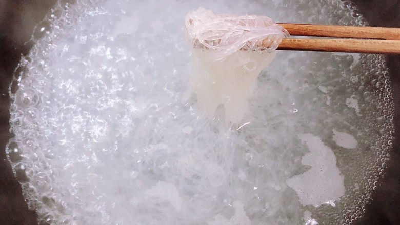 2. 锅中烧开水,放入粉丝煮2-3分钟。