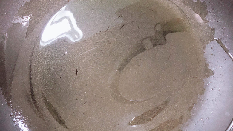 10. 在不粘锅中倒入少量的油,小火慢慢加热。