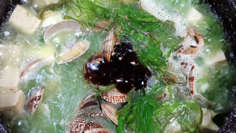 今天带来的这道花蛤豆腐汤,我添加了裙带菜和粉丝,好吃又营养。肉质细嫩的蛤蜊和鲜美清淡的裙带菜,再加上爽口嫩滑的豆腐和粉丝,熬出浓郁的汤汁,喝一口简直鲜到心头。在这秋冬的季节来碗暖呼呼的热汤是件再幸福不过的事了! 裙带菜是一种常见的食用海藻,生长在海底,被称为深海绿黄金,也叫海藻之王。 裙带菜含钙量是“补钙之王”牛奶的10倍,含锌量是“补锌能手”牛肉的3倍。500克裙带菜含铁量等于21斤菠菜,含维生素C量等于1.5斤胡萝卜,含蛋白质量等于1.5个海参。其含碘量也比海带多。
